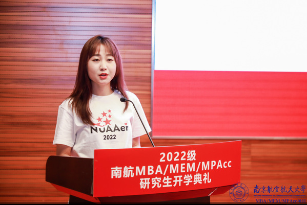 MPAcc新生代表瑟琳格是一名来自内蒙古的蒙古族学生,她跨越1600多公里来到南航求学,是因为相信未来是充满无限可能的。荣誉代表过去,前行才能描绘未来,期待所有新生:高站位、宽胸怀和实做事。期待所有研究生用掷地有声的青春,去完成一篇倾注感情的读研故事。