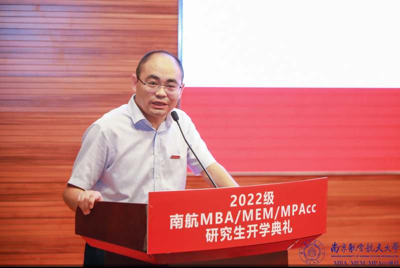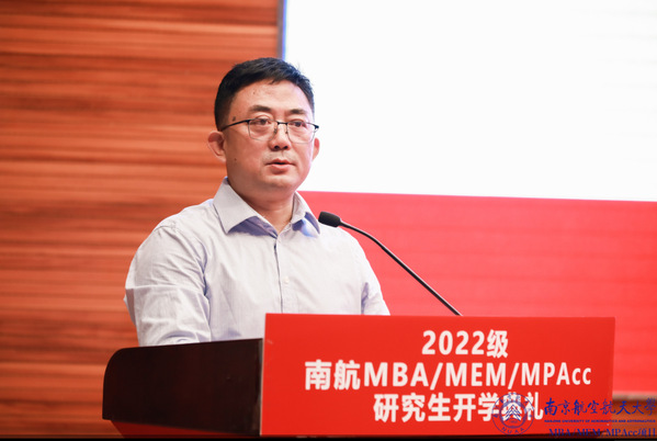 MBA教育中心执行主任杜刚博士为所有新生分享了《全力以赴,知行合一,打造精彩的研究生生活》,他认为拼搏精神尤其重要,与改变世界比较起来,改变自己才容易一些。期待所有新生不断奋进,不断努力,在南航在职研究生的舞台上绽放自我,不断前行。
